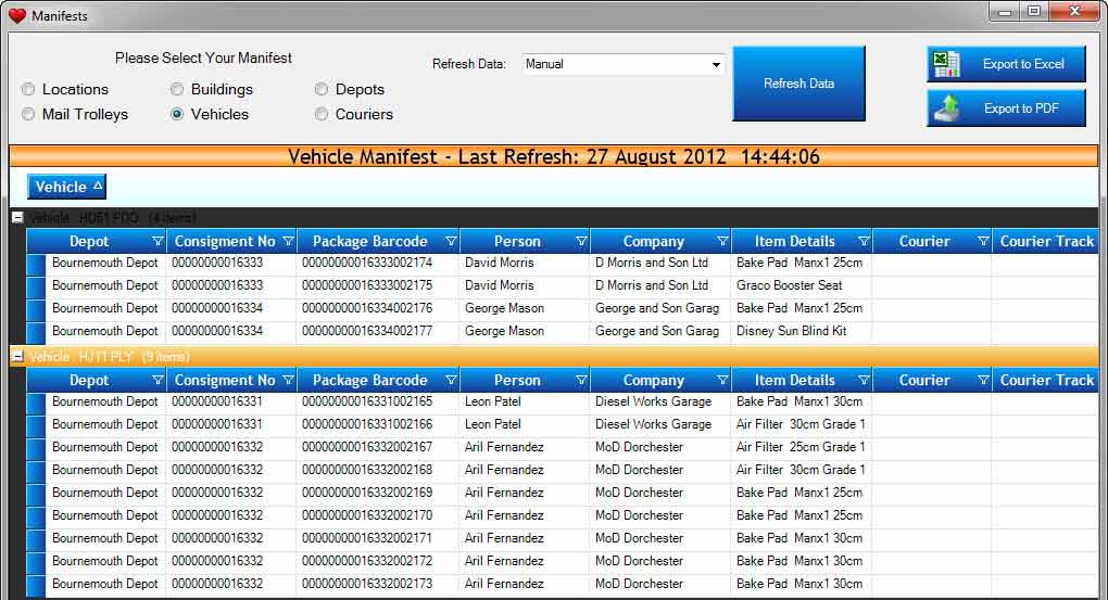 You can schedule the system to Email both Summary and Batches of Tracking Reports to both Logistics Staff and Customers at set times of the day. Here are some samples: